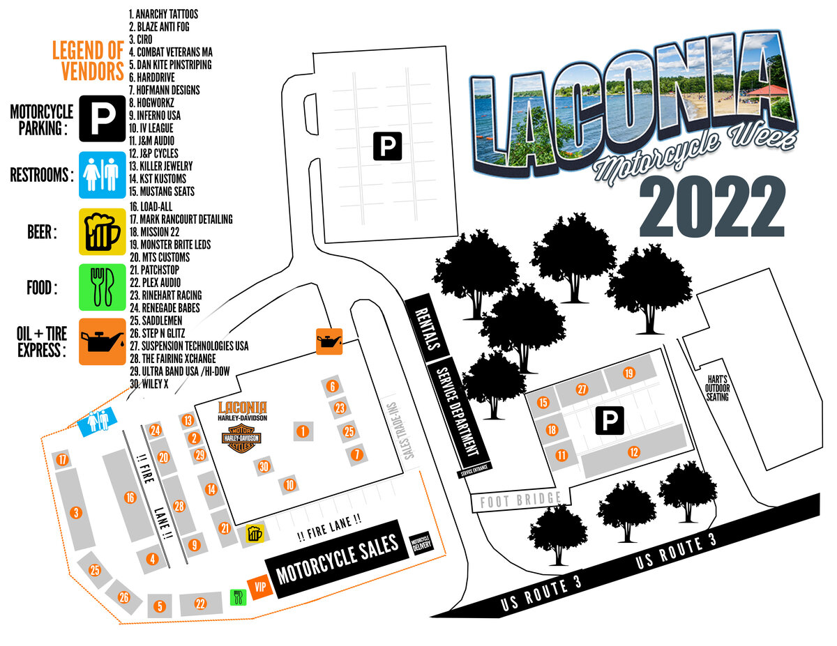 The complete list of vendors can be found on the Laconia Motorcycle Week Event Page, click here for more details.