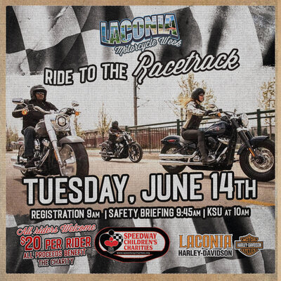 • The Ride to the Racetrack – Tuesday, June 14, 2022. Registration at 9am. Kickstands up at 10am. All riders welcome.