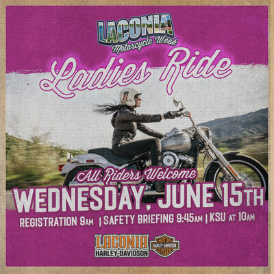 • The Ladies’ Ride – Wednesday, June 15, 2022. Registration at 9am. Kickstands up at 10am. All riders welcome.